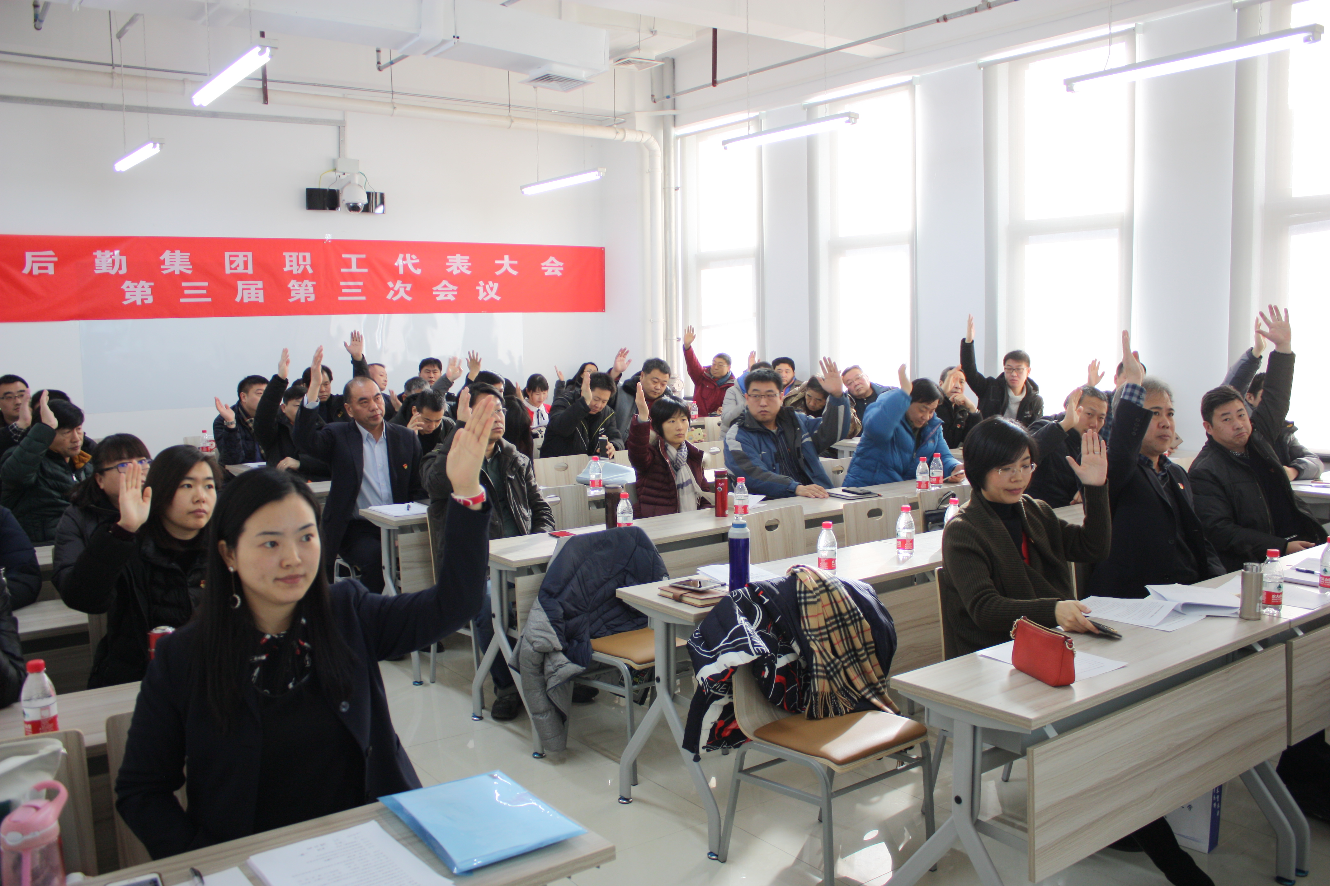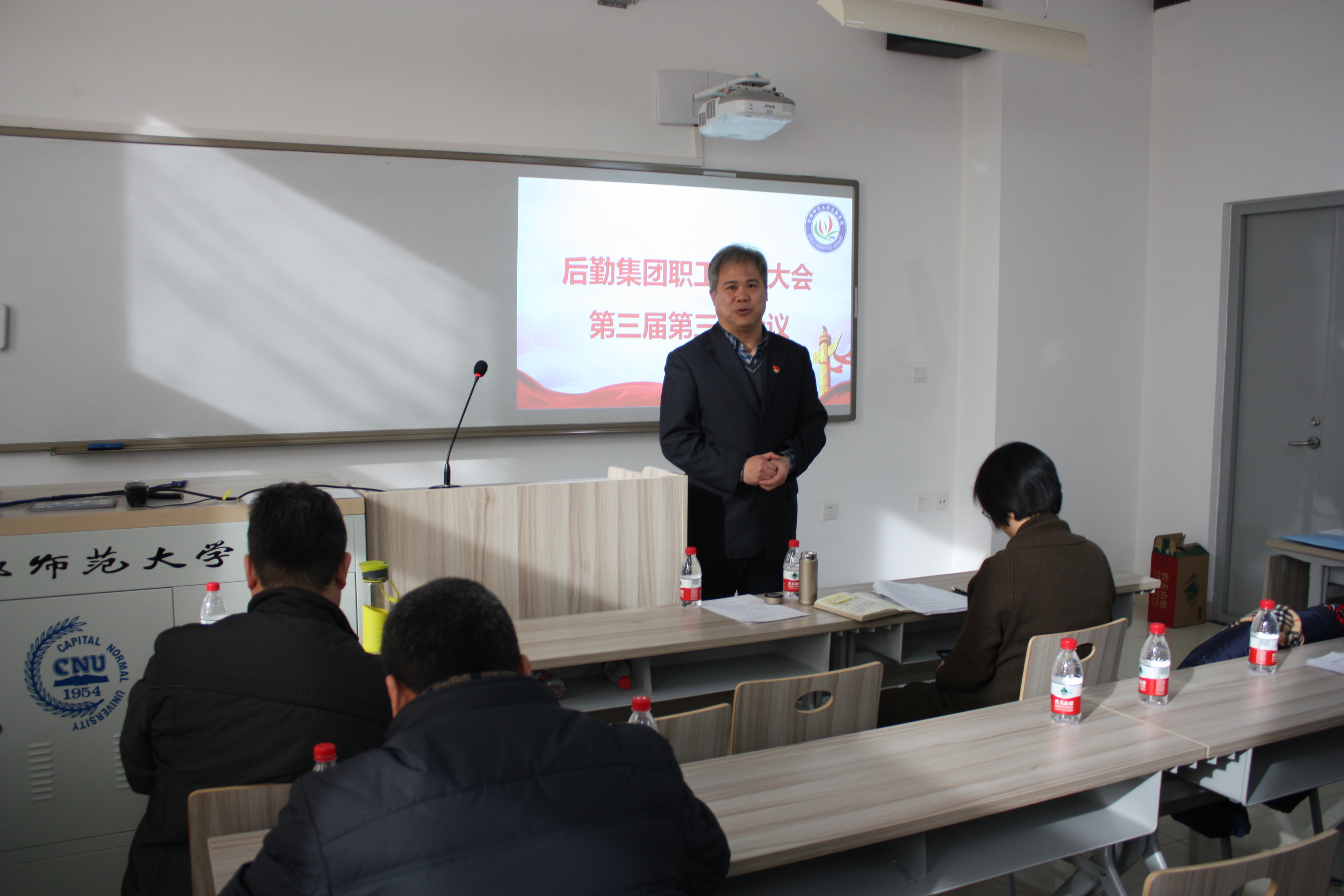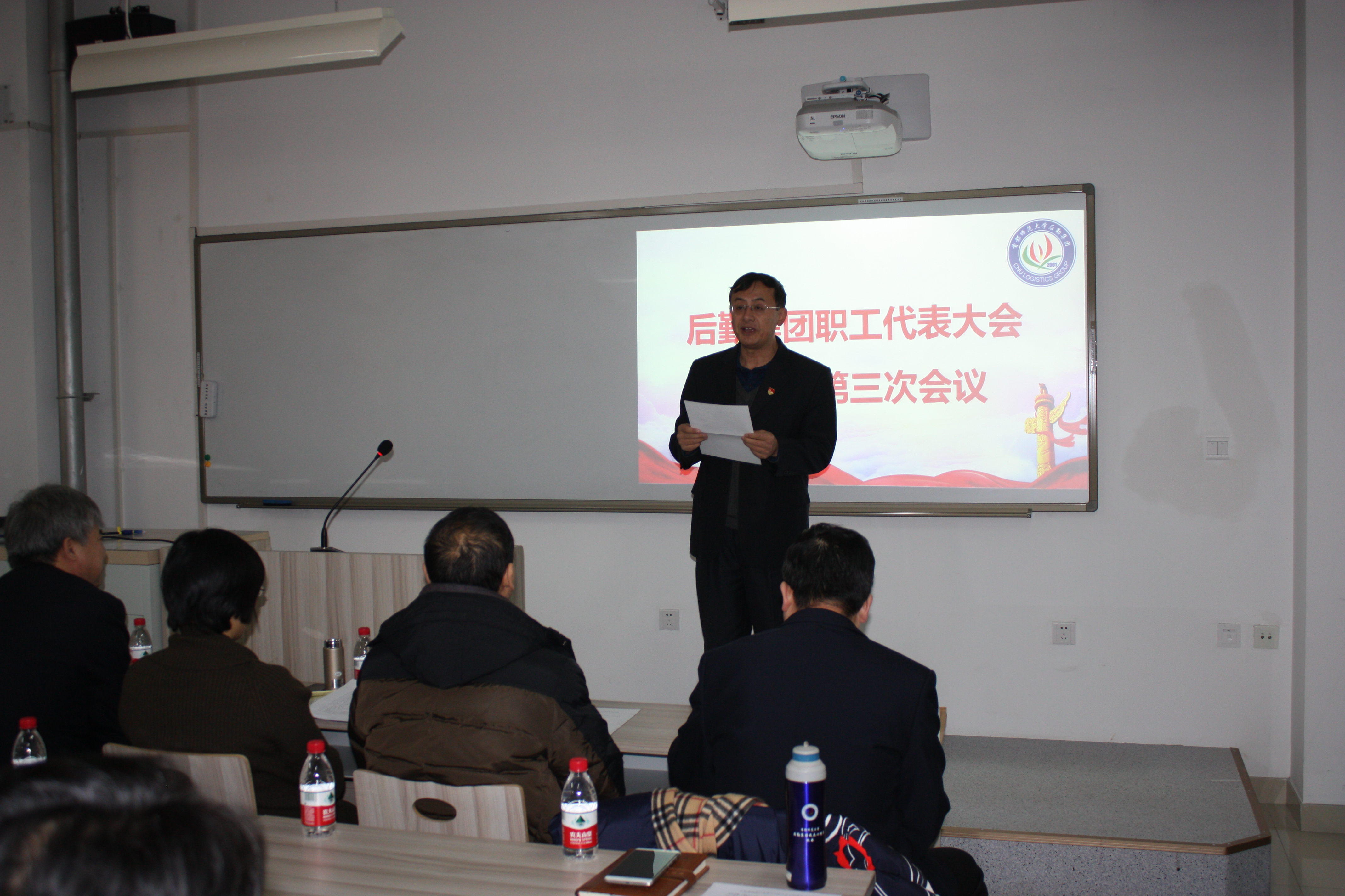 1月16日上午,后勤集团在教一楼119教室召开第三届第三次职工代表大会会议,50余名职工代表参加会议,校工会副主席陈志永应邀出席会议,会议由职委会主任张德忠主持。